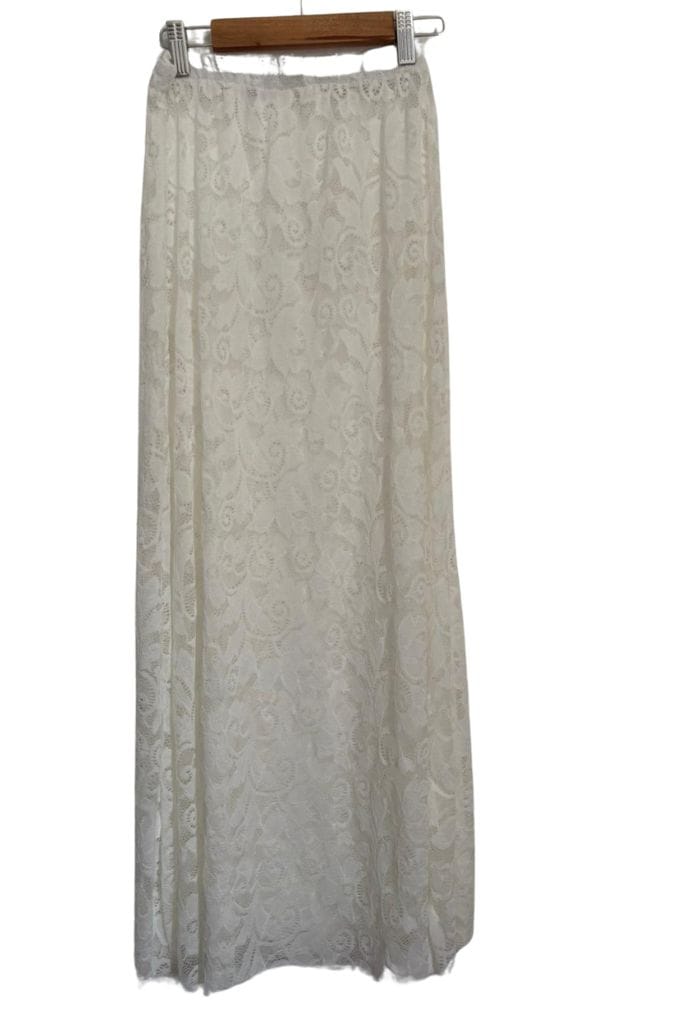Falda de encaje con elástico en la cintura que permite que de talla hasta una 42-44 aproximadamente.