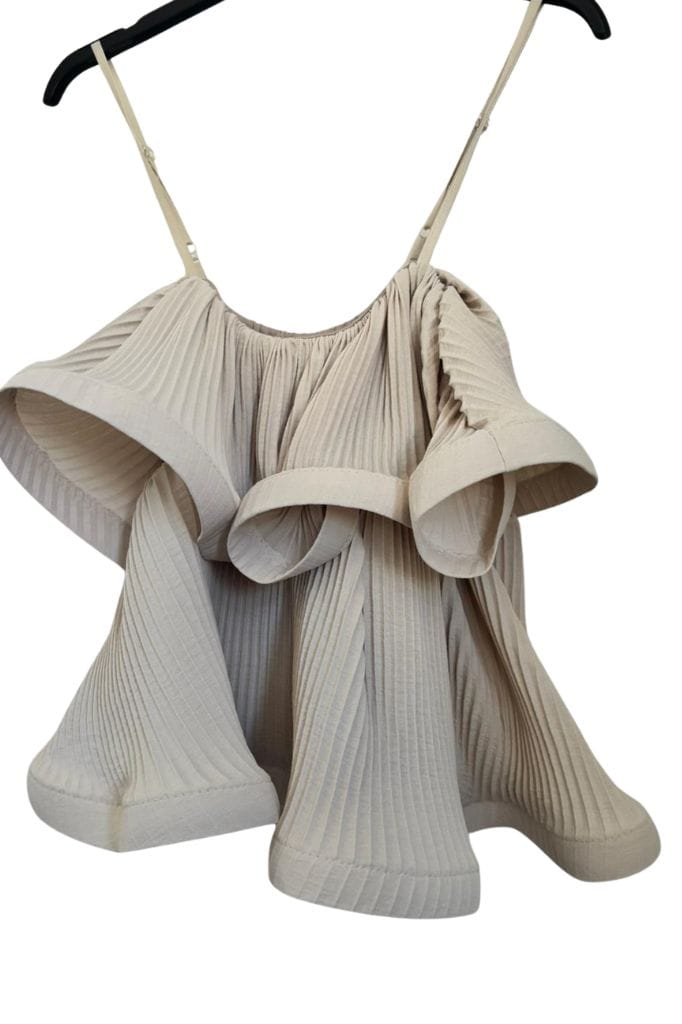 Top doble capa o maxi volantes. Plisado, tirantes regulables.